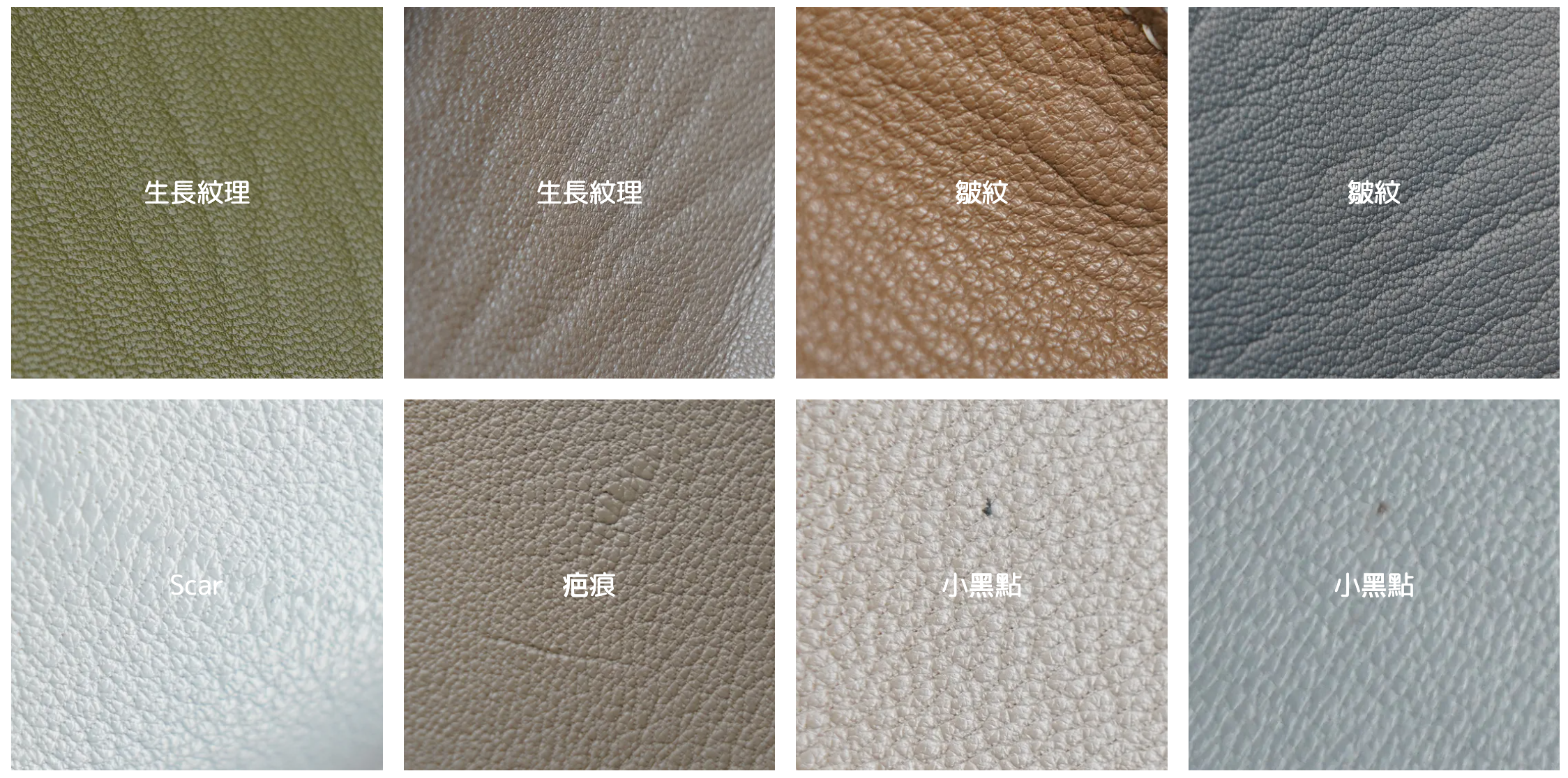 我們使用的優質真皮有機會出現以下天然特徵(包括外層及內層)。